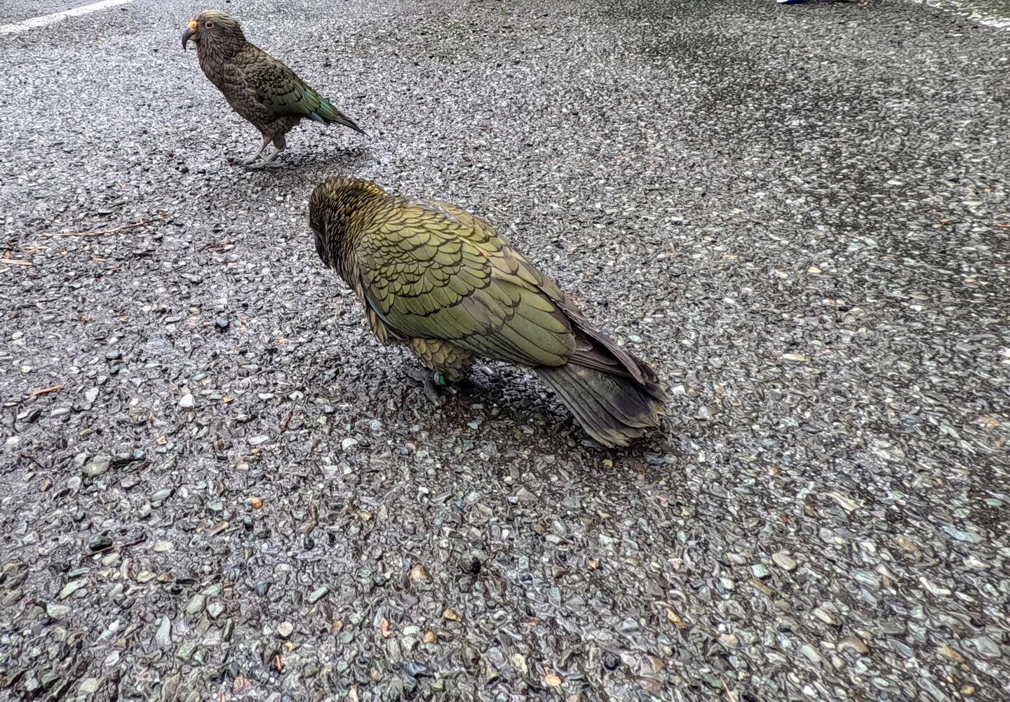 On s'est arrêté voir des cascades sur le chemin et on a vu 2 kea qui attendaient d'être nourris 🦜🦜