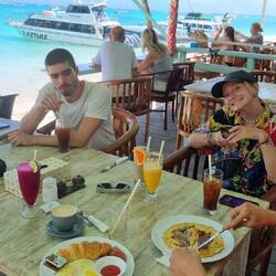 Vstávali jsme v 8, objednali si snídani, která byla v ceně - omeleta nebo palačinka s banánem. Dneska se budeme dělit - Víťa s Terkou zůstanou relaxovat na Trawanganu, Pavel, Adam a já jsmeEn savoir plus