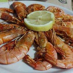 Terminamos el paseo con unos gambones deliciosos en el chiringuito que hay a pie de playa, acompañados de unas patatas ali oli. ¿Podía haber un final mejor?