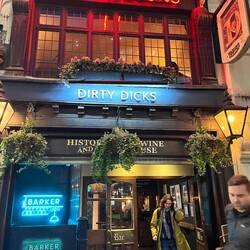 Henrike und Gero sind ab Köln geflogen. Wir ab Dortmund. Die beiden sind schon geplant früher angekommen, und dann kam bei uns noch Verspätung dazu. So sind die beiden schon mal mit dem Stansted Express vorgefahren und hatten 2 Pints Vorsprung als wir ankamen. Treffpunkt war der legendäre Dirty Dicks -Pub. Schon bekannt von vergangenen Pints.