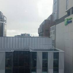 If one ignores having to evacuate the hotel within an hour of arriving, Hotel Indigo has been a very pleasant place to stay. Our room was spacious, the bathroom layout worked, and everythingLæs mere