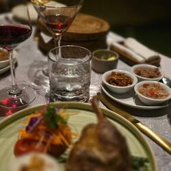 Will dr Transfer noch dr Gruppareis ins Hotel nid klappt het wia buacht, het üs dr lokali Reiseverahstalter als Entschuldigung as romantisches Dinner im Hotel organisiert.