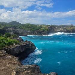 Zerst hemmer Kelingking Beach oder au T-Rex Beach ahgluagt. Das isch a sehr bekannta Ort.