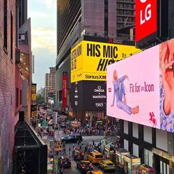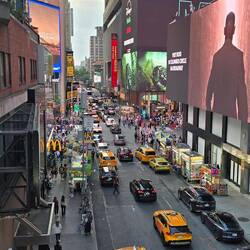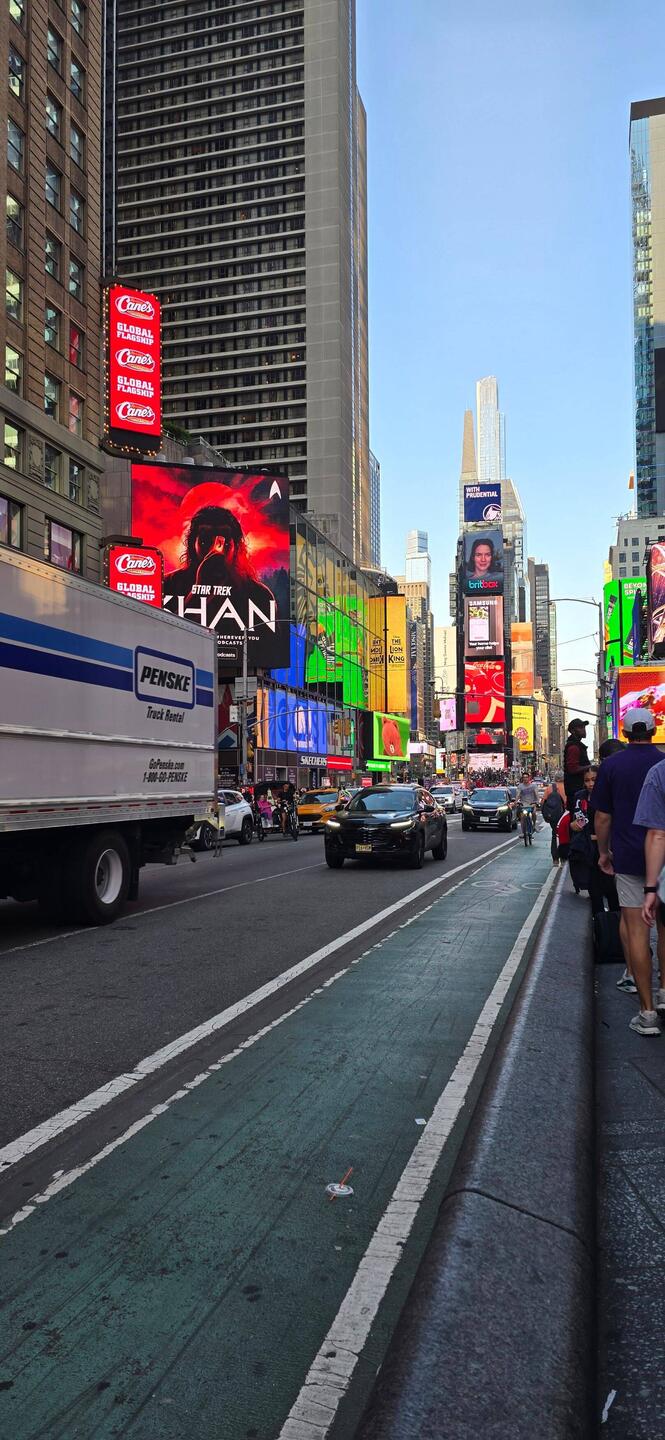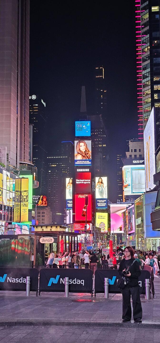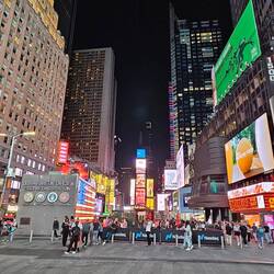 Dr Times Square entfaltet sich ersch am Obig so richtig. So hend miar ihn au gseh, womer ins Restaurant zum Znacht sind.
