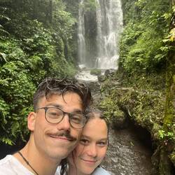 On repart ensuite pour une nouvelle montée qui nous amène, vous l'aurez deviné, à une 3e cascade (jamais 2 sans 3 comme on dit). Toute aussi jolie que les premières ! Elle est plus étroite et plus haute comme si elle sortait de la falaise pour juste suivre un chemin très défini. On met les pieds dans l'eau mais pas de baignade dans celle-ci, aucune profondeur ne le permet. On s'éloigne un peu du chantier qu'on suivait jusqu'à maintenant pour s'éloigner vers... une 4e cascade ! Eh oui encore, mais, promis c'est la dernière. Celle ci est beaucoup plus petite que les autres mais a un côté très charmant. On s'arrête dans un café à côté histoire de se ressourcer un peu. Petit problème, ici, ils ne filtrent pas le café, et la texture lorsqu'on boit est un peu désagréable. On rentre par la grande route, fini la jungle et on redescend jusqu'à notre hôtel où une bonne douche nous attend. Comme l'eau chaude ne fonctionne pas dans notre chambre, on nous dépanne avec une autre salle de bain, histoire de se réchauffer car, dans la montagne, le froid accompagne la tombée de la nuit. On avait répéré un endroit pour manger mais il semblerait qu'il a fermé alors en rebroussant chemin on s'arrête dans un petit warung tout mimi. On mange poulet curry pour Rems et soupe aux papates pour moi. Puis c'est dodo car on s'est quand même levé super tôt et que la fatigue se fait ressentir à 21h30