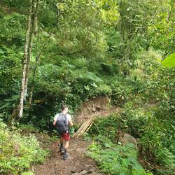 On arrive à Munduk à 14h30 directement déposés devant notre hôtel. On est un peu fatigué mais on sait que si on se pose on risque de siester jusqu'à la tombée de la nuit et totalement nous décaler pour les journées à venir.. Alors, comme il nous reste de l'énergie dans les jambes après cette montée finalement pas si dure, on décide de partir en randonnée au cœur de la jungle qui nous entoure. En effet, le village où nous logeons est un petit village de montagne principalement composé d'une route qui le traverse, celle-ci entourée de rizières d'un côté et de la jungle de l'autre côté. La vue depuis notre chambre d'hôtel est sublime, de la végétation à perte de vue.