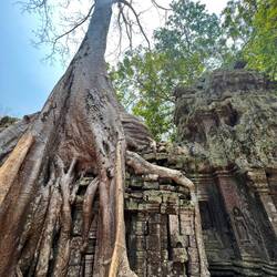 Direction ensuite vers le temple de Tomb raide, le temple Ta Prohm. Sa particularité est d’avoir des immenses arbres qui ont poussé partout sur le temple. C’est vraiment spectaculaire et la nature ne cesse de nous surprendre. C’est le temple que j’ai préféré car ce côté avec les arbres qui poussent sur les ruines et le reste du temple donne vraiment l’impression d’être un aventurier qui découvre un temple perdu dans la jungle.