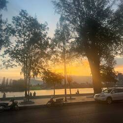 Cela m’a aussi permis de « visiter » la ville et de me rendre compte que c’est bien plus sale que la Thaïlande ou le Vietnam. Cependant la circulation notamment les feux tricolores sont beaucoup plus présents (dans la capitale en tout cas) et ils sont respectés ! J’ai pu apercevoir quelques reflets rosés du coucher de soleil.