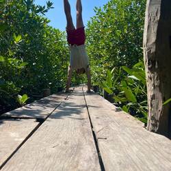 Je pars ensuite le ventre bien plein en direction de forêts de mangroves que j’avais vu presque sur ma route du retour. Au final pour les voir il faut payer un peu et un bateau vous y emmène. Je me retrouve alors tout seul sur une longue pirogue pouvant accueillir 10 personnes je pense. Celle-ci m’emmène sur une passerelle qui traverse la mangrove. Je n’avais jamais vu une foret pareil, des racines à perte de vue plantées dans un peu de sables. La mangrove est peuplé d’une tonne de crabes et escargots réunis. Au début j’ai eu un peu peur car on entend quand on est sur la passerelle comme des craquements de bois. C’est en fait les crabes qui cassent des choses avec leur pinces je pense. C’est un bruit assez net comme si on cassait une branche. Les crabes que j’ai pu voir sont pour beaucoup noirs mais certains sont brillants, j’ai pu en voir des bleus, des rouges et des verts. C’était quelque chose à laquelle je ne m’attendais pas, un très beau spectacle de la nature une fois de plus. J’ai même pris le temps de faire quelques photos rigolotes sur la passerelle ! 😂