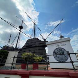 Malacca, dont le centre est reconnu par l’Unesco, est animé par le street art dans ces rues. J’ai entendu qu’il fallait se perdre dans les rues pour mieux le découvrir alors je range mon téléphone (hormis pour les photos) et vagabonde de droite à gauche sans trop me soucier d’où je vais. Je m’arrête prendre un café dans une boutique spécialisée là dedans. C’est un petit monsieur qui me l’a conseillé dans le temple chinois. Je l’ai pris à emporter pour continuer de me balader et le savourer en même temps que l’architecture. Étant arrivé tôt il n’y a encore pas beaucoup de touristes si bien que je me retrouve tout seul dans des petites ruelles. Et par hasard je tombe sur la rue la plus peinte que j’ai trouvé. Elle était très cachée donc je pense que beaucoup de gens la rate mais c’était superbe (voir vidéo). Toutes sortes de peintures ornaient les murs de celle-ci. Ensuite je me balade au bord du canal ou de grandes fresques sont peintes puis monte en haut d’une colline où siège l’église Saint Paul. Des grandes dalles d’époque y sont entreposées. J’aperçois au loin un immense bateau donc je m’y rends en descendant. C’était un fameux trois mâts en exposition à meme le sol. Il était tres impressionnant.