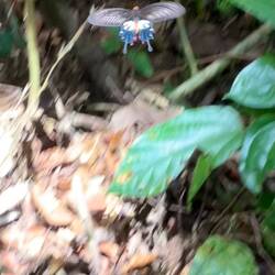 Ça y est j’ai atteint la cabane. Dedans il y’a de sommiers et même un toilette. Je me pose alors pour observer sans un bruit en espérant voir quelque choses. Sachant que pour le moment j’ai vu des fourmis et beaucoup de papillons. J’aurai pu rester beaucoup plus si j’avais plus d’eau mais étant donné la quantité que je transpire je fais attention. J’aurai la chance de voir deux très beaux oiseaux (j’ai cherché les espèces après je ne suis pas ornithologue😂). Un drongo bronzé et un guêpier à gorge bleue malheureusement je ne suis pas encore assez vif pour prendre les oiseaux en photo en vol 😢. Mais je vous laisse aller vous renseigner sur Google. J’ai vu aussi un couple (c’est ce que j’ai déduit) d’oiseau jaune qui buvait au bord de la rivière au loin. Une quantité infini de papillons de toutes les couleurs et des grosses mouches qui sont venus m’embêter 😬. Sur la route à l’aller j’ai croisé des fougères bleutés aussi c’était rigolo !