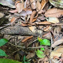 Une descente pittoresque débute puisqu’il n’y a pas trop de chemins juste une corde à suivre, tout le monde a fait demi tour je suis le seul à descendre pas là alors je me demande si je n’ai pas fait une erreur. L’humidité dans le parc est de 95% je suis un bain de sueur ambulant mais bon c’est le cas pour tout le monde. Le problème est que je n’ai plus beaucoup d’eau mais ça va quand même. Ça descend assez raide mais je suis tout seul et c’est super beau. Je croise énormément de convois exceptionnels de fourmis me bloquant la route et m’obligeant à les enjamber. C’est assez rigolo ça fait vraiment comme des petits trains ou comme les embouteillages sur l’A6 en départ de vacances en août. J’ai croisé des fourmis endorment de la taille d’une phalange de pouce de longueur. A un moment j’entends comme quelque chose qui marche dans les feuilles mortes alors je m’arrête et le bruit continue comme si le vent soufflait fort dans les feuilles mais il n’y avait pas un poil de vent. En regardant le sol c’était encore les fourmis qui étaient en encore plus grande quantité qui en se déplaçant sur les feuilles du sol faisaient un boucan pas possible. Les voyants commencer à me grimper dessus je pris la fuite en continuant mon chemin. J’arrive enfin a l’intersection indiquant le poste d’observation ou le retour a l’entrée du parc. Je ne lâche pas mon objectif et me dirige alors vers le poste ! Le chemin est plutôt plat cette fois-ci, il y’a des petits ponts pour traverser des rivières des fois c’est assez sympa et je suis encore tout seul 😅.
