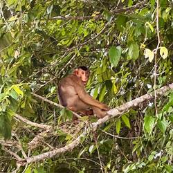 Aujourd’hui on réalise donc une première croisière le matin. Lors de celle là on verra de nouveaux animaux surtout des oiseaux, des hérons pourpres et blanc, deux Martins pêcheurs, un aigle pêcheur et plusieurs nids d’oiseaux. Après cela on rentre prendre le petit dej puis on part pour une marche dans la jungle. On ne verra rien mais c’est quand même sympa de marcher dans la nature, il y avait quand même beaucoup de moustiques 🦟. Petit repos puis on prend le déjeuner. On se retrouve à un plus petit groupe car certains ne faisaient que un tour d’une nuit. C’est sympa car je sympathise plus avec les gens que quand on était beaucoup. L’après-midi on repart et on aura la chance de voir des orangs-outans sauvages. Ils étaient deux, un mâle et une femelle qui allaient bientôt faire un nid pour s’accoupler. D’habitude l’orang-outang est solitaire donc c’est une chance pour nous. Ils sont quand même bien caché derrière les feuilles des arbres. On verra aussi beaucoup beaucoup de singes à grand nez, de plus près qu’hier et encore l’oiseau avec le nom compliqué. Le soir après le dîner on retournera en marche nocturne mais encore une fois un peu bredouille, une chenille se sera transformé en papillon mais c’est tout.
