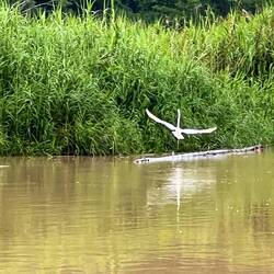 J’entame alors le retour au parc c’est au bord de la rivière c’est assez sympa d’entendre le bruit de l’eau ça change des fourmis… Je passe tout de même sur un pont ou une armées de gros scarabées volants me bloquaient le passage à voler dans tous les sens alors j’ai couru d’une traite pour le traverser. En arrivant juste avant l’intersection avec le Lubuk Simpon je vois des petits affiches plastifiées. Tiens, tiens, tiens qu’est-ce qui peut bien être écrit. Une espèce d’arbre ??? Non, une indication du chemin ??? Non… En fait c’était un sens interdit ⛔️ qui disait de ne pas aller par là sans guide Oups 🙊. Bon pas grave tout s’est bien passé et j’ai vu de jolis oiseaux. Je ne me suis pas arrêté me baigner car un groupe de touristes envahissaient déjà la rivière et j’avais un peu soif. Je croise des gardes au retour mais personne ne me demande quoi que ce soit alors je ne dis rien et trace ma route. Je reprends le bateau et rentre à l’hostel pour le poser 5 minutes avant d’aller manger.