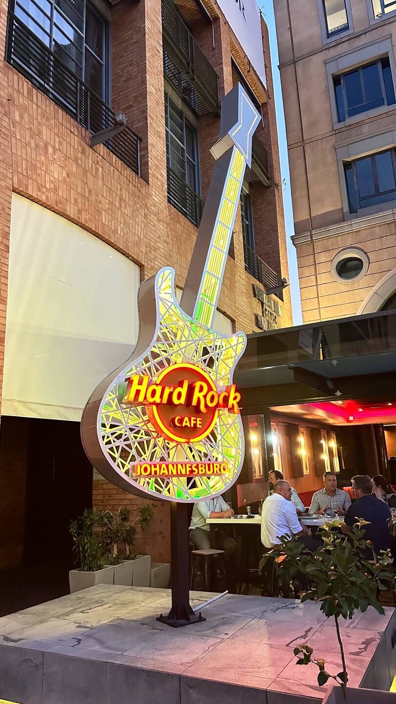 Nach 8 Stunden entspanntem Flug sind wir in Johannesburg gelandet. Der Abholservice von Emirates klappte wunderbar. Nach einchecken im Hotel haben wir uns einen Uber geordert und sind ins Hard RockLue lisää