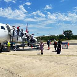Erster Flug ist geschafft. War Mega entspannend, es gab leckeres Essen und nun warten wir auf den Weiterflug nach Johannesburg