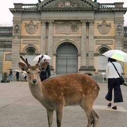 Mit dem Shinkansen nach Osaka und dann weiter nach Nara. Im strömenden Regen Bekanntschaft mit den Hirschen gemacht, danach dann zur Expo nach Osaka.