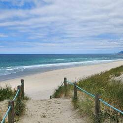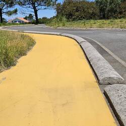 Questo tratto è bello ma in gran parte è un nastro giallo oro che corre a lato di una strada molto trafficata, l'oceano è sempre calmo, Sino ad oggi non ci sono state mareggiate, solo una mareaLue lisää