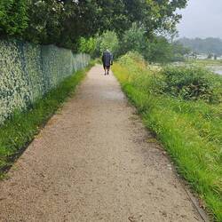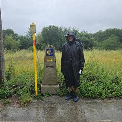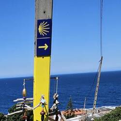 Uscire da Vigo non è stato semplice, il sentiero subito dopo la prima periferia si inoltra nel bosco e con la pioggerellina di oggi era piuttosto infagato, comunque un bel percorso con vista sulLue lisää