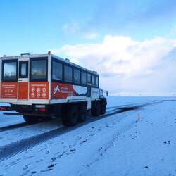 Heute morgen stand als erstes ein Vulcan an und die Erklimmung des Randes. Der Weg hochzus war steil, vereist und kostete dank starkem Wind einiges an Energie. Als wir oben ankamen war der Wind nochMeer informatie