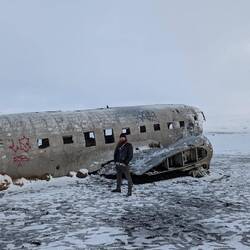 Der nächste Stopp war der Strand mit dem berühmten Flugzeugfrag von dem Musikvideo von Sólstafir. Der Weg an den Strand von 3,5km kann man auch mit einem Taxi fahren aber wir sind gelaufen. Da manMeer informatie