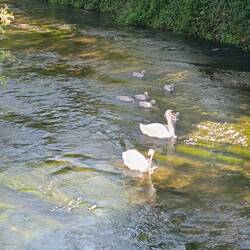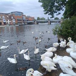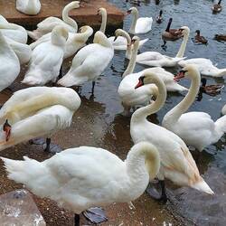 Die royalen Schwäne sind zahlreich zum Füttern erschienen.