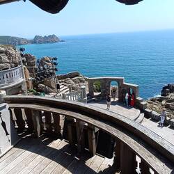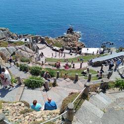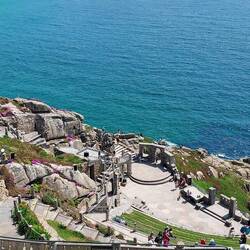 Das Theater liegt atemberaubend an den steilen Felsen oberhalb der Strands von Porthcurno.