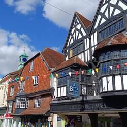 Ein Gasthof aus dem 16ten Jahrhundert im hübschen Städtchen Salisbury am Fluss Avon.