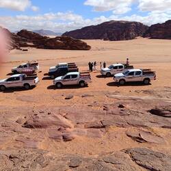 Nach dem guten Frühstück warteten mehrere Toyota Geländewagen mit Beduinen auf uns. Mit jeweils 6 Personen auf der Pritsche ging es gut zweieinhalb Stunden durch die Wadi Rum Wüste. Auf einemЧитать далее