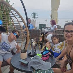 Úgy látszik nem volt elég a csapatnak egy nap kocsimentesség a 15 óra út után, szóval ma is helyben maradás és strandolás mellett döntöttünk. És természetesen, mivel Artúr is köztünk van, a tegnapi placcon, csak hogy ne változzanak a dolgok. Mondjuk ennek ma kifejezetten örültünk, mert semmi kedvünk nem lett volna a városi strand hering partijához. Nyugis betonplacc, 2 napernyő, asztalhoz kihozott hideg sör, nem is lehet erre nemet mondani 😁😁.