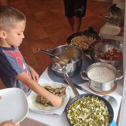 Estére Andó gondolta összeüt valami kaját, szóval Zsuzsival nekiestek a konyhának és lett egy teljes gasztroorgazmusa a csapatnak . Krumplileves, hús, rizs, vegyes sali, tofus borsó, kukorica, teljes az este. Majdnem, mert tánc még sehol, irány a borabora.. cash van, élőzene nincs tehát zárul a buli, majd talán holnap...Les mer