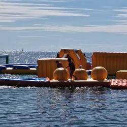 Még csak dél van, szóval pár szenya berak, kenu és minden egyéb súlyos kolonc a vállra, és utól is értük Kovácsékat. Kicsi strand, majd az összes gyerek lábalatt téblábol, hogy van egy vizi kalandpark a "közelben", ők azt szeretnék.