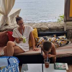 Szóval még egyszer összes cucc összekészít bepakol, lecipel, összeállít, felfúj, kipakol. Ma szerencsére sikerült a parti emelkedő tetején letáborozni ahol a fák egész nap adnak árnyékot, és még egy padot is rekviráltunk gyorsan hogy még kényelmesebb legyen a nap. A hét végére elértük, hogy Brúnó kb be se akar menni a vízbe inkább a parton olvas hol árnyékban, hol napon, de kb folyamatosan. Artus viszont belelendült a tengerezésbe, és egyfolytában bent akart lenni. Szóval fordult a kocka.