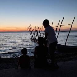 Az eső, és 2 üveg Rose végére azért kaptunk egy gyönyörű dupla szivárványt ( és nemcaak mi apukák láttuk, tehár a bornak ehhez semmi köze), szóval itt volt az ideje egy duplacsaládi sétának. Lementünk a minikikötőhöz, a srácok teljes erőbedobással próbáltak mindefélekővel kacsázni, majd amikor a világ összes romantikus, naplementés képe is elkészült, elindultunk haza....