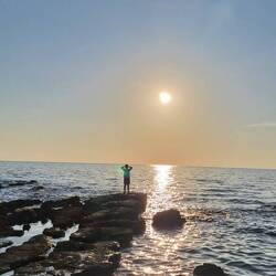 Ahogy tegnap északra ma délre mentem el hajnalban körülnézni. Ez az oldal sokkal változatosabbnak tűnik, ugyanis Zambratiján át egész Katoro-ig elfutva végre nem csak lakókocsikkal találkoztam ( nem mint ha bajom lenne velük, de na...) Helyette a másik nagy favorit, a természet és kommunizmus lágy keveréke tárult elém. Első szakaszon felturbózott nyaralóstílusú kádárkockák, aztán a nagy, vörösagyagosösvényes, jó illatú örökzöldes (sose fogom megjegyezni a nevét de talán tengerparti és aleppo fenyő) és füves rétek, majd sziklás, kavicsos mólók és parti ösvények, amiket már már stílusosan szakít félbe egy egy betonból "épített" (vagy leborított) strand.