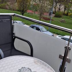 A játszótér/kondipark/focipálya igazi osztrák precizitás. A pálya körül vaskerítés, a kapu a kerítésből van kialakítva (kinek kell a háló, csak átmegy rajta a labda), és még a teteje is le van fedve hálóval hogy ne lehessen kirúgni az ablakokat. Mellette ping-pong, udvari csocsó, kondipark és játszótér, szóval gyerekekkel kánaán. Bár kicsit több a szemét mint amit az osztrákoktól megszoktunk, de ezt betudhatjuk a környékbeli bérház sokszinű lakosságának is.