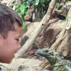 Amúgy a hely nagyon szuper volt, a bejáratnál kapásból volt egy aranyhalsimogató (nem vicc), ahol legalább egy helyben maradtak a srácok míg lepakoltunk. Utána pedig tényleg 11 emeleten keresztül akváriumok, cápák, ráják, fogdosható doktorhalak (ott Brúnó kapott egy teljes manikűrt mire hajlandó volt otthagyni őket), helyenként szabadon mászkáló majmok, papagájok, és szerencsére nem szabadon mászkáló hüllők és pókok.
