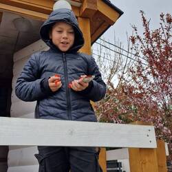 Mivel késő délután van, a húsvéti nyuszit már nem találtuk az udvaron, de kedves volt, és elpotyogtatott néhány tojást, csokit, egyeben az udvaron, a kisházban és még a nappaliban is, így az utazás végét általában jelző kimerült sirdogálás helyett azonnal a tojáskeresési láz vette át a helyét, így a megérkezés is öröm volt mindenkinek.