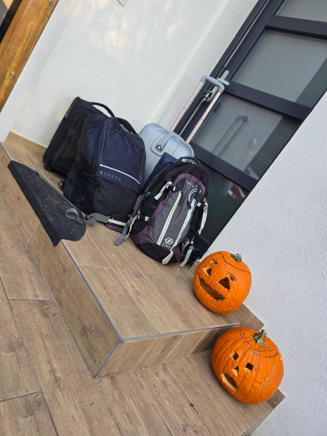 4 kézipoggyász, meg egy felvihető 10kg-s kisbőrönd, Zsuzsi szerint kell ennyi mert ősz van. Én azt gyanítom vásárolgatni akarnak kint, mert egy csomó helyünk van még, de hát ez van, a lényeg, hogy minden elrakva, és nem szakadunk meg.