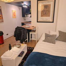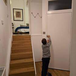 Az épület a tipikus angol tégla házsor, annyira keskeny ajtóval meg lépcsőházzal, hogy a bőrönd se fér el keresztbe, nem hogy egy zongora (bár az nincs is a lakásban, de ha akarnának se ott jönne be 😁) . A lakás pedig egy pici szoba, pici nappali-konyha, sok kis keskeny lépcsős tipikus angol lakáska. Pont jó lesz 4 napra.