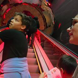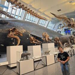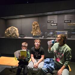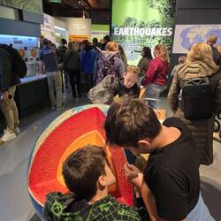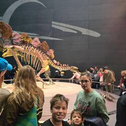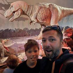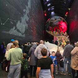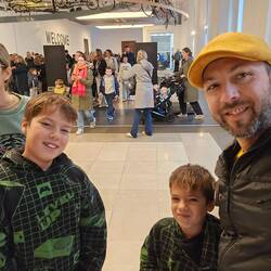 A múzeum hatalmas. 4 szekció, közel 60.000 m2, több mint 70 millió kiállított darab, szóval lesz mit nézni. Ahogy beléptünk egy hatalmas mozgólépcső indult el a piros szektor 2.emeletére, keresztül egy földgömbön. Végigmentünk a földtörténeti és geológiai blokkokon, tele van interaktív elemekkel, a gyerekek mindent is meg akartak fogni, nyomkodni, piszkálni, tesztelni, szóval mire 1 óra alatt 2 szintet megnéztünk Brúnó már mondta is, hogy ennyi információt már nem tud befogadni az agya. Artúr is láthatóan kezdett fáradni, szóval racionalizálásba kezdtünk. Válasszuk ki azokat amiket mindenképpen látni szeretnénk és menjünk át oda. Ezek persze a dínók, és az állatok voltak, követ már láttak eleget Bécsben 2 éve. Szerencsére a kék szektor, ahol ezek voltak a szabadtéri rész mellett volt a múzeum túloldalán, szóval mielőtt belevágtunk, kicsit kimentünk a levegőre, a botanikus kertbe felfrissülni. Innen dínó világ, aztán kitömött állatok garmadája, (nem győztem Artúrt nyugtatni, hogy ők már úgyis meghaltak volna, csak utána kitömték őket és nem biológiai mészárlás és sorozatgyilkosság áldozatait látja, pedig de), és eddigre teljesen lemerült a csapat. Végül több mint 3 óra alatt sikerült kb a múzeum 1/3 részét megnézni, de megérte. Főleg ingyen 😄