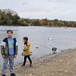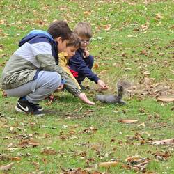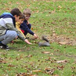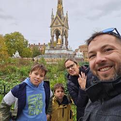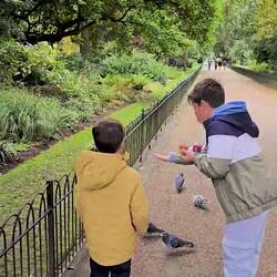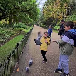 Na akkor egy kis mozgás, és egy kis remény a gyerekeknek, hogy nem minden állatot nyírtak ki az angolok, hogy kitömhessék, itt van nem messze a Kensington Gardens és a Hyde Park, menjünk oda mókust szelidíteni. Artúrt nagyon érdekelte végig hogy tényleg lesznek e, és hogy csak 1-2, vagy ott "zsemlyegnek" mindenhol (hemzsegneket akart mondani, de ez jutott eszébe hirtelen) 😄 Szerencsére nem kellett kitalálnom valami kamu biológiai okot ami miatt a mókusok már 10 fokban téli álmot alszanak és elvonultak délre, mert ahogy beléptünk a Kensington Gardenbe egy móki már el is szaladt előttünk. Aztán még vagy 300 mire átértünk a park túloldalára. Sokszor mondtam már, hogy Brúnó biztos hogy suttogó, mert itt is jöttek hozzá a mókusok, galambok, sőt még egy papagáj pár is majdnem a karjára szállt nézelődni, de Arti is sok mókust magához édesgetett. Szóval végül Artinak is megnyugodott a lelke, csak úgy zsemlyegtek a mókusok.