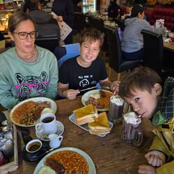Na szóval második próbálkozásra a Meral's Cafe Bistroban kötöttünk ki, rendeltünk 3 adagot a reggeliből (tükörtojás, bab, bacon, kolbász, pirítós, Zsuzsinak még gomba is), a srácoknak 1-1 oreo-s milkshake-kel, megbeszéltük a török pincérrel, hogy történelmileg kb uncsitesók vagyunk, és jól bereggeliztünk. Indulhat a móka.