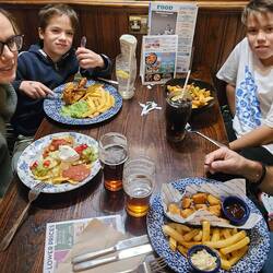 Egy ideig agyaltunk hogy hol kéne vacsorázni, de Arti szeretett volna visszamenni a tegnapi Pub-ba egy Fish and Chipset enni, szóval átmentünk a GreenPark túloldalára, metróra pattantunk, és irány vissza Kilburn. 23.000 lépés mire végül leültünk vacsizni, büszke vagyok a csapatra 😄