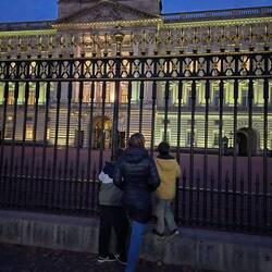 Innen visszafele a Westminster apátság előtt elhaladva elindultunk a St James Parkba, ahol lehetett egy kicsit megint mókusokat és kacsákat szelidíteni. A park túloldala pedig már a Buckingham Palota, szóval egyúttal megnéztük azt is gyorsan, már amennyire lehetett látni ebből a távolságból, és már teljes sötétségben.