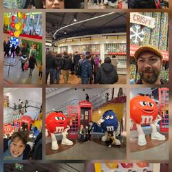 Akkor most Apa jön, irány a közeli m&m's bolt, ami csak 3 emelet, de CSOKIIIII!!!!. Szóval át is sétáltunk ide. Ahogy beléptünk megcsapott a csoki és csokisminden illata, szóval nem volt könnyű határokat szabni. Van egy teljes fal, ami tele van m&m's csokikkal, kölönböző ízekben, szín szerint válogatva, meg méret szerint, és kis zacsiba tudsz magadnak válogatni 4£/100 g áron. És persze mondanom se kell, hogy ez az igazi szülői kihívás, hogy úgy kell a mennyiségre meg az összes kiegészítőre határokat húznod, hogy te magad mindent IS beraknál a kosárba. Végül megálltunk 400g vegyesen összerakott mogyorós/sóskaramellás m&m's csokinál és otthagytam az m&m's mamuszt, pólót, melegítőt, sütőformát, csészéket, sapkát, és még a karácsonyfadíszeket is. Egyszer még visszatérek és kimentem őket rabságukból, de egyenlőre maradnak 😄