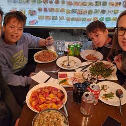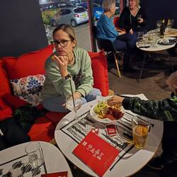 Mire itt is végeztünk kezdett sötétedni, szóval bementünk a szomszédos Chinatown negyedbe bámészkodni és sétálgatni, de mivel közel van az Outernet London is, ami egy fényekkel/ledfallal megspékelt látványosság, azt se akartuk kihagyni, szóval elmentünk oda is egy kicsit. Legalább pihentünk egy 15 percet a földön fekve, a fényeket bámulva. Innen újra Chinatown, ma itt vacsizunk. Zsuzsi kiszúrt egy kis kifőzde kinézetű helyet, ahol sok kínai volt ami azt jelenti jól főznek, mert külföldön a kínaiak nem esznek ám meg bármit. Be is ültünk, kicikínainéni kihozta az étlapot (szerencsére fotókkal), és rendeltünk egy nagy adag kaját vegyesen. Igaz a tévhit, (szóval nem is tévhit) tényleg oda érdemes beülni, ahol az adott náció is hajlandó enni, mert irtó finomat ettünk. Volt tészta, rizs, csirke több féle elkészítéssel, marha, pirított bab, és tavaszi tekercs, pálcikával elcsipegettünk mindent az asztalról.