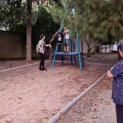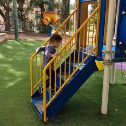 Azért a nagy semmittevés is tud mozgalmas lenni pedig Bnei Atarot igazi kis falunak számít itt. Délelőtt kimentünk a helyi játszótérre ahol csodák csodájára a fiúk vagy 2 órát úgy elvoltak mint a befőtt, pedig valójában egy darab csúszdalabirintus van csak. De azon lehet különböző útvonalakon gyorsasági versenyt rendezni. A játszi mellett van egy focipálya is így Brúnó is tudott kicsit focizni velem, hogy teljes legyen a boldogság. Délután 1 órára már teljesen kifárasztottuk őket.