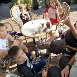 Először reggeliért indultunk, ami rengeteg falafel humusz, burakas, és minden egyéb volt, aztán irány a park. Savyon a környék elit helye, puccos új villákkal, szóval tényleg jó kis park lett ahova mentünk. És szerencsére a játszótér mellett hatalmas füves placc ahol Brúnónak gyorsan megkérdeztük a helyi srácokat hogy beállhat e hozzájuk focizni, és hamar kialakult a nagy focimeccs. Először 4en voltak, 10 perc múlva már vagy 14 gyerek rúgta a bőrt. Szóval jól sikerült a kiruccanás. Utána még egy hatalmas fagyi party, és irány vissza Bnei Atarotba pakolni.
