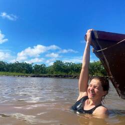 A great morning in the sun on the boat with our guide Roger. Some money, birds and dolphins watching. Afterwards also dive in the amazon.